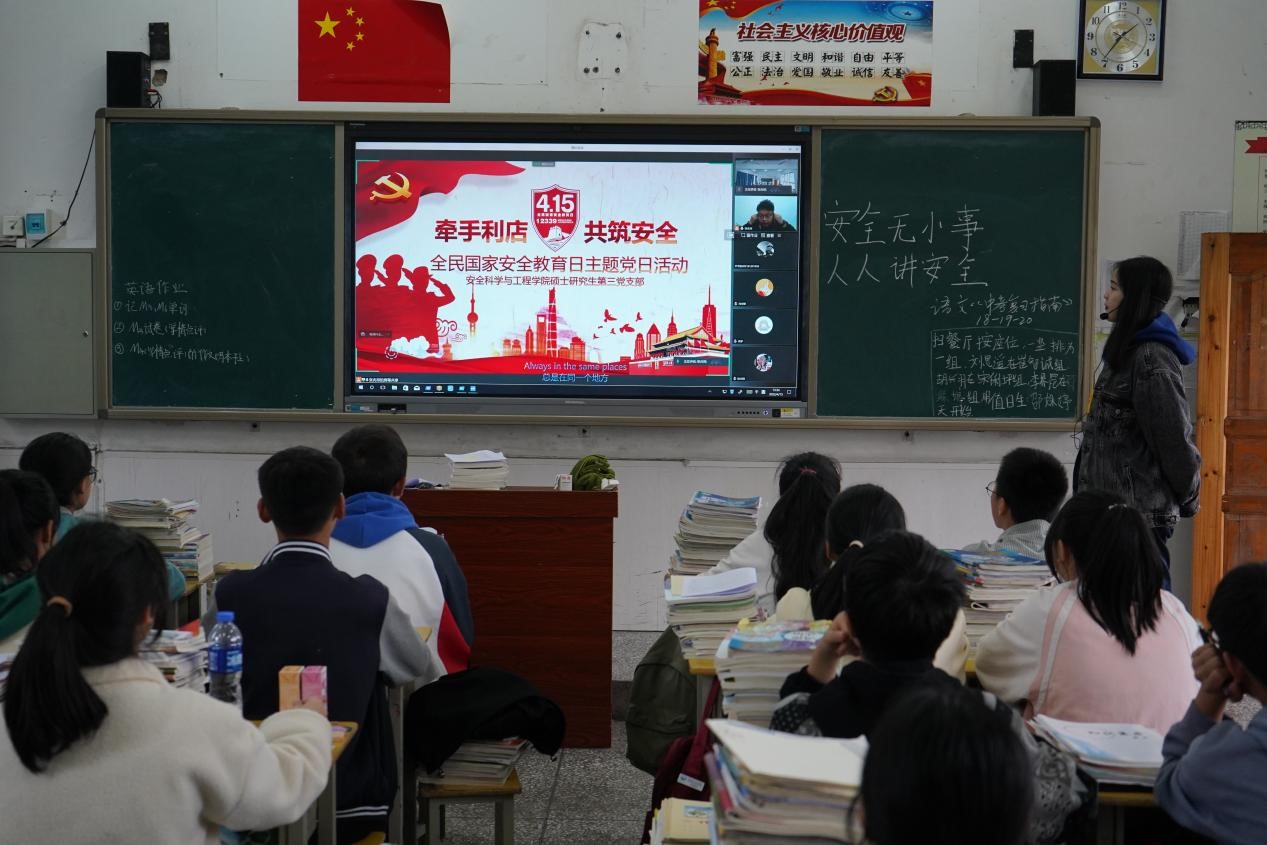 4月15日下午,在第七个“全民国家安全教育日”来临之际,9001cc金沙硕士研究生第三党支部围绕主题“树牢总体国家安全观,感悟新时代国家安全成就,为迎接党的二十大胜利召开营造良好氛围”,联动校研支团,面向四川省沐川县利店中学线上开展“牵手利店,共筑安全”主题党日活动。党支部全体党员、校研支团成员阿伦塔娜、赵星宇以及九年级三班全体同学参加活动,活动由党支部书记张兆琛主持。