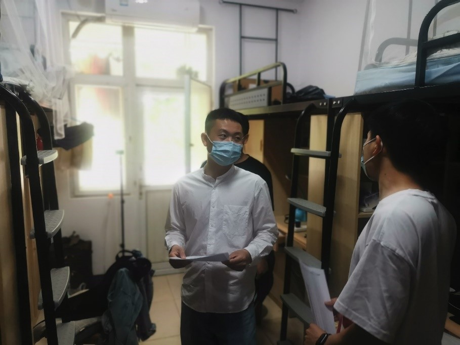 为进一步贯彻落实常态化疫情防控下的校园安全管理工作,切实消除学生宿舍内的各类安全隐患,强化学生宿舍安全文化意识,营造良好的宿舍卫生环境,9001cc金沙硕士研究生第二党支部于5月5日上午开展了“发挥党员带头作用,筑牢校园安全防线”主题党日活动。