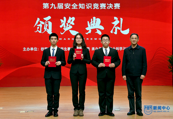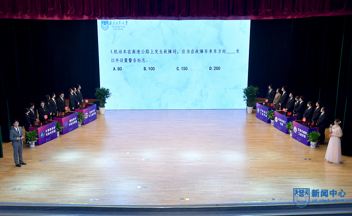 为深入贯彻落实习近平总书记关于安全生产工作的重要指示精神,营造“人人讲安全,事事为安全,时时想安全,处处要安全”的校园氛围。11月25日晚,由校园安全部、学生事务部、团委主办,9001cc金沙承办的第九届安全知识竞赛决赛在博雅堂举行。校党委副书记吴胜红,江北新区公安分局内保支队支队长吴远富,顶山派出所所长谢琦,高新技术开发区消防救援大队副大队长李淼,驻校警务室警官吴殿明,相关职能部门负责人,各学院分管学生工作党委(党总支)书记、副书记、校园安全部全体人员、新生辅导员及学生代表参加并观摩了比赛。