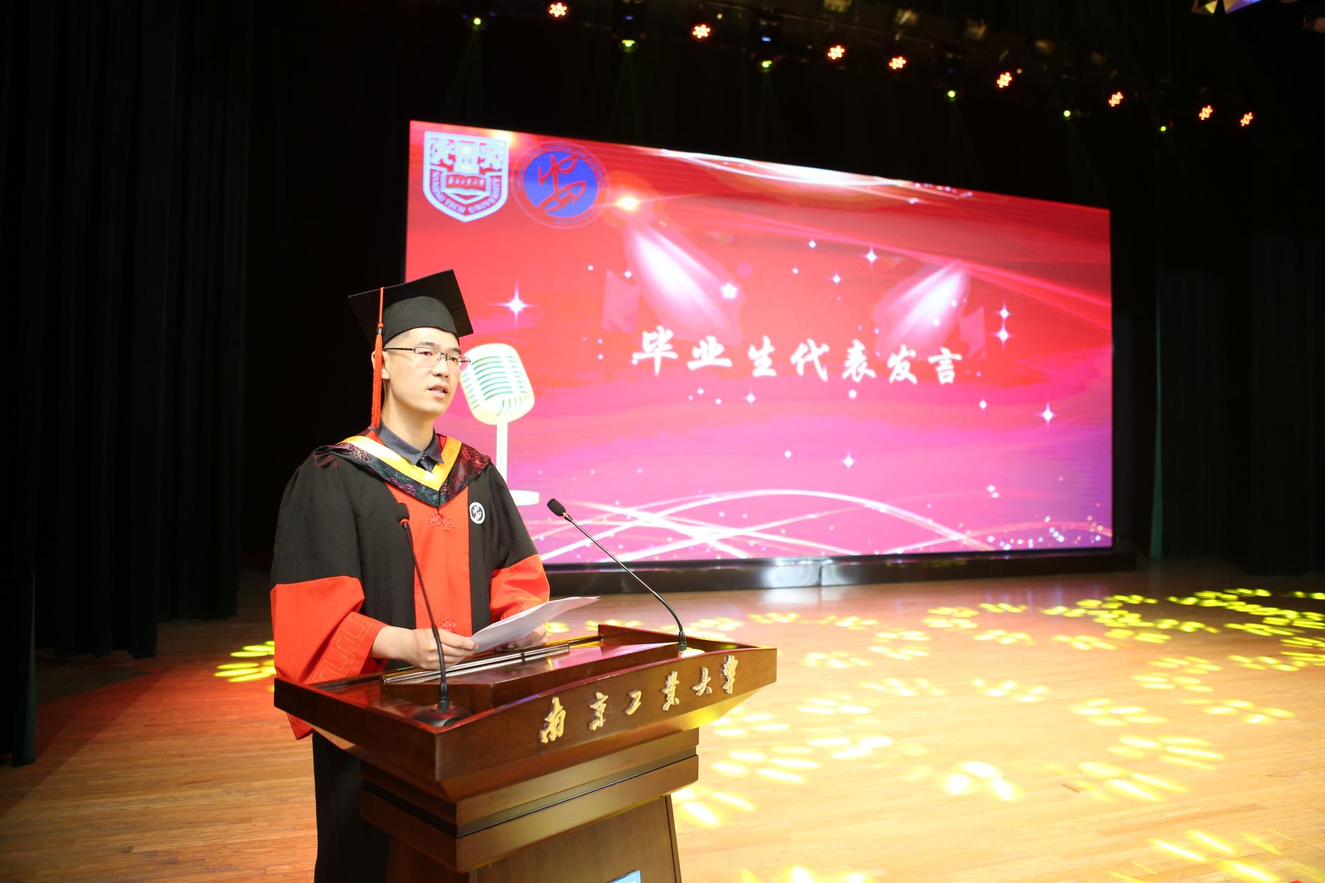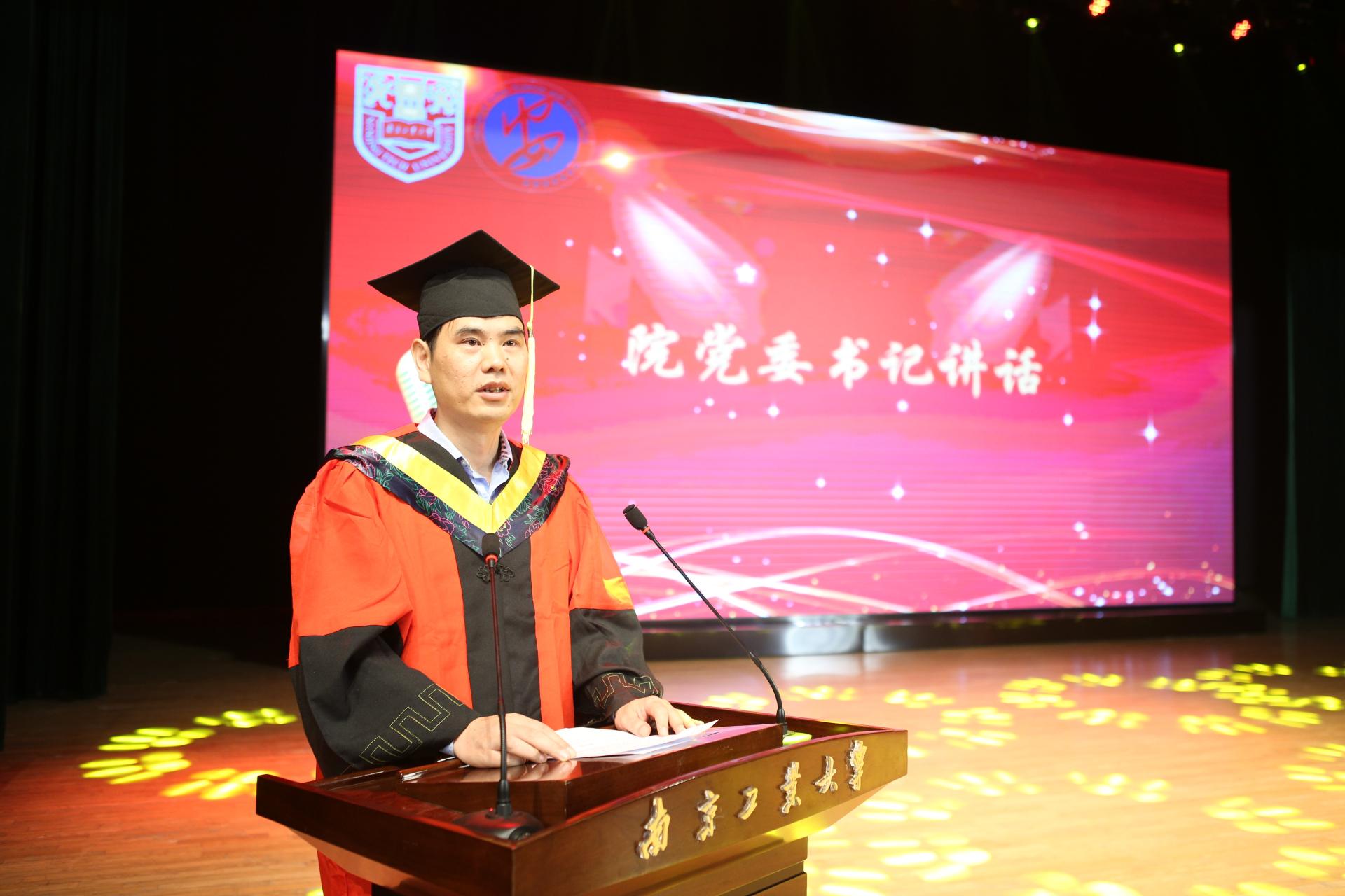 毕业典礼在庄严的国歌声中拉开帷幕。9001cc金沙院长潘勇在致辞中向毕业生们送上最真挚的祝福并寄语“希望同学们能坚守理想,永远保持赤子之心;希望同学们在脚踏实地和仰望星空中,优化创新路径;希望同学们将个人的命运自觉融入到民族的命运、人类的命运当中”。