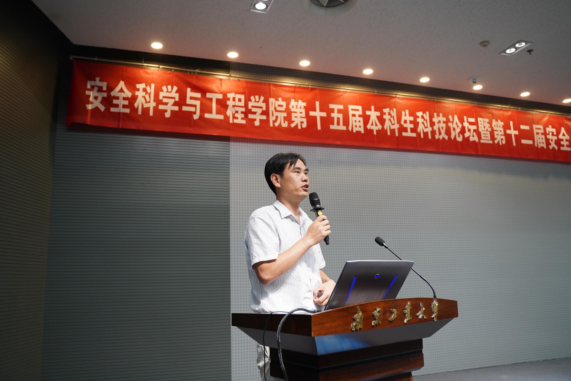 喻源老师为本次论坛致开幕词。他表示,正值新中国成立七十周年之际,学院广大青年学生积极投身创新实践,让科研兴趣的种子生根发芽,茁壮成长,在学院消防科技节的平台上展示青年人的风采,勇于承担时代的重任,为国家安全发展贡献青春才智。