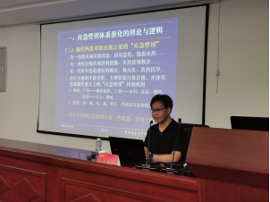 李湖生教授以《国内外应急管理体系的比较与启示》为题,详细介绍了应急管理体系演化的理论与逻辑、国外应急体系发展概况与启示、我国应急管理新体制新机制、我国应急体系未来改革发展的重点等。长达两小时的报告内容充实,理论底蕴深厚,令参加讲座的师生代表受益匪浅。同时,李教授对比分析了以美国、日本、俄罗斯为代表的国家在新冠肺炎应对方面的详实数据,让在座师生深刻感受到中国在疫情应对方面的成就,使得本次讲座在浓厚的学术氛围中又饱含深刻的思政内涵。