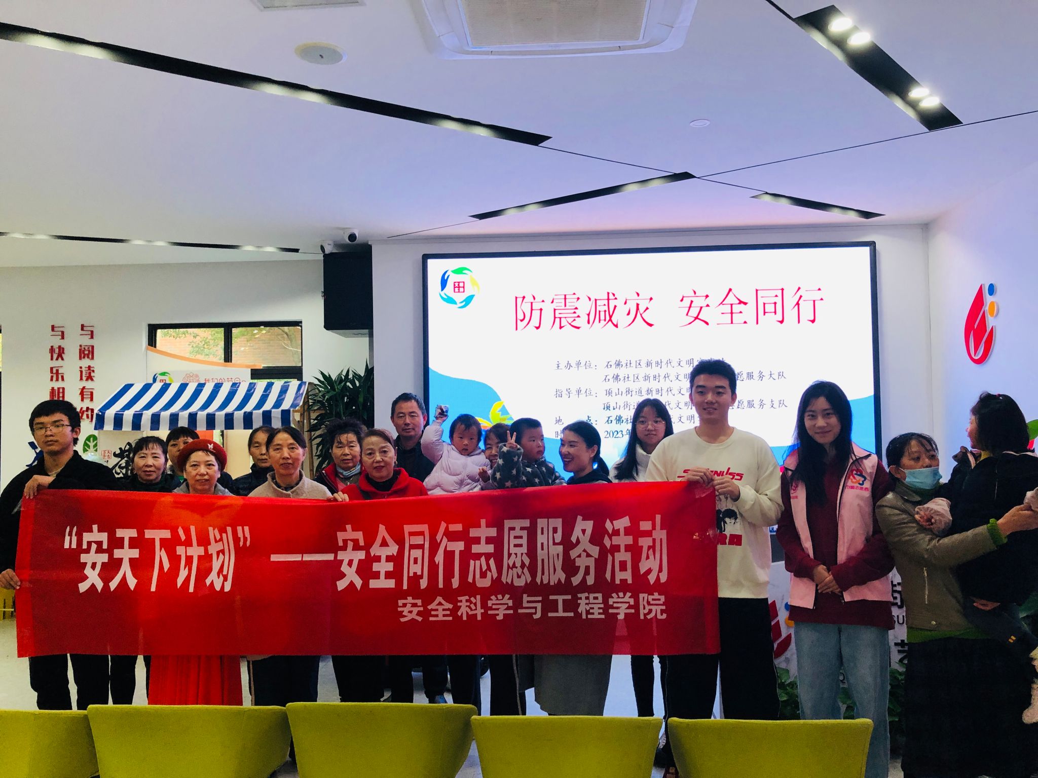 为向社区居民普及防震减灾和避险互救知识,增强其防震减灾意识及灾后逃生自救能力。11月26日上午10:00,由9001cc金沙安全2204班开展的“防震减灾,安全同行”志愿服务活动在顶山街道石佛社区举行。
